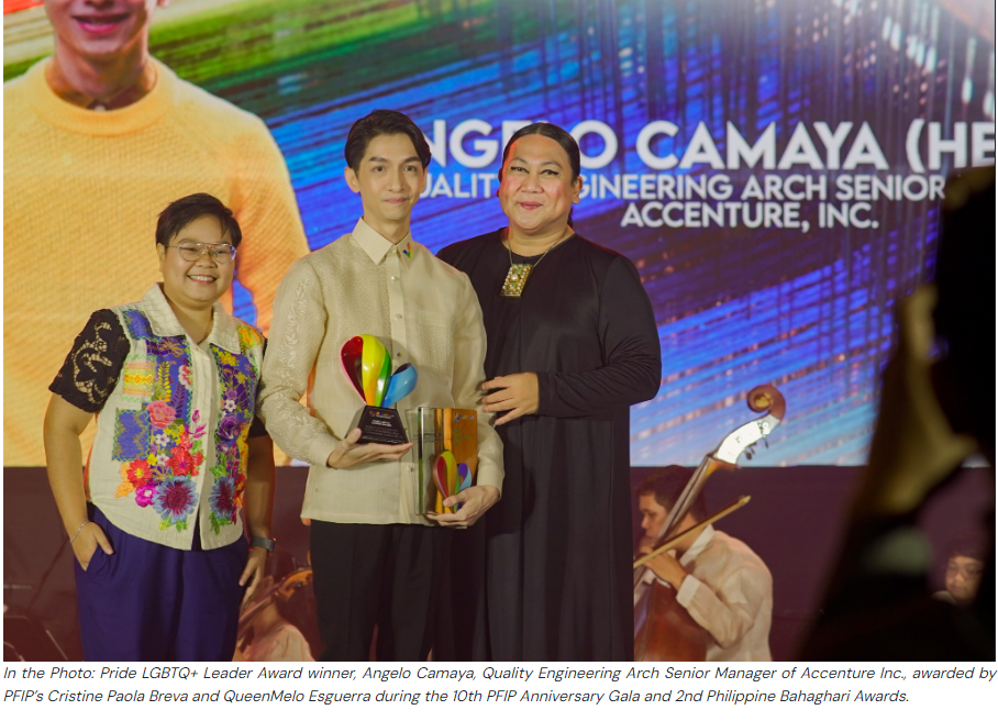 Additionally, the Pride LGBTQ+ Leader award was presented to Angelo Camaya for leading comprehensive allyship programs across Advanced Technology Centers in the Philippines of Accenture. The Philippine Anti-Discrimination Alliance of Youth Leaders (PANTAY) secured the Pride Advocacy award for their community initiatives and their active lobbying for progressive and gender-transformative legislation.